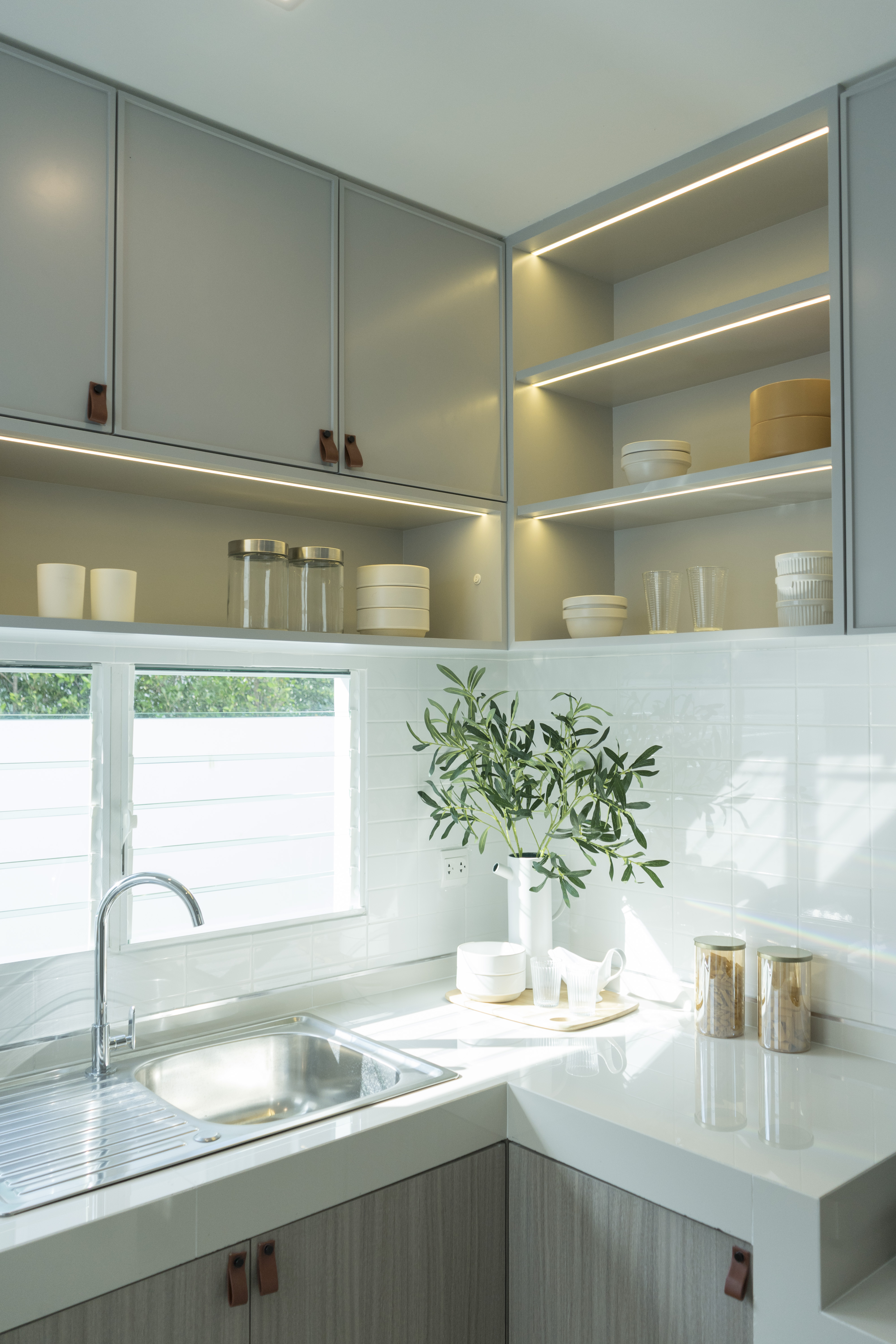 Odpowiednie przechowywanie to również umiejętne wykorzystanie wolnych przestrzeni. Pomyśl o wiszących półkach nad blatem czy wąskich szafkach. Każdy centymetr ma znaczenie! Poznaj więcej praktycznych porad na temat przechowywania na blogu Kuchinox.