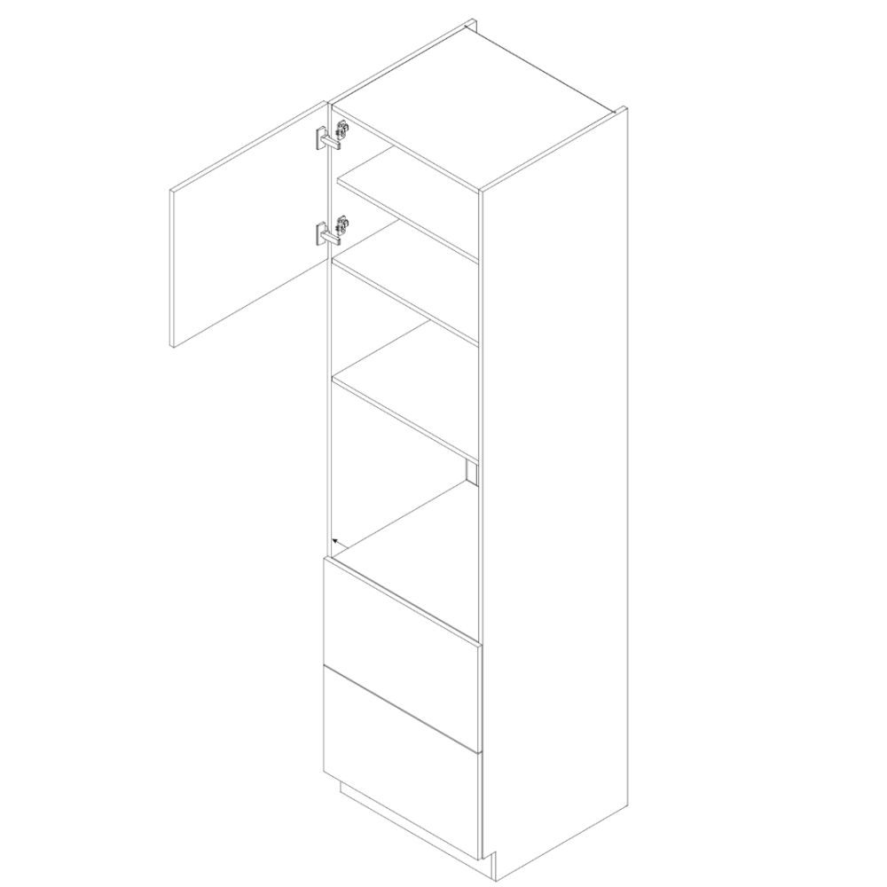 Front wykonany z płyty MDF foliowanej o grubości 19 mm, natomiast korpus z płyty laminowanej o grubości 16 mm. Cokół oraz podstawowe akcesoria montażowe w komplecie, cichy domyk w standardzie, natomiast uchwyt oraz blat do wyboru w opcjach dodatkowych.
