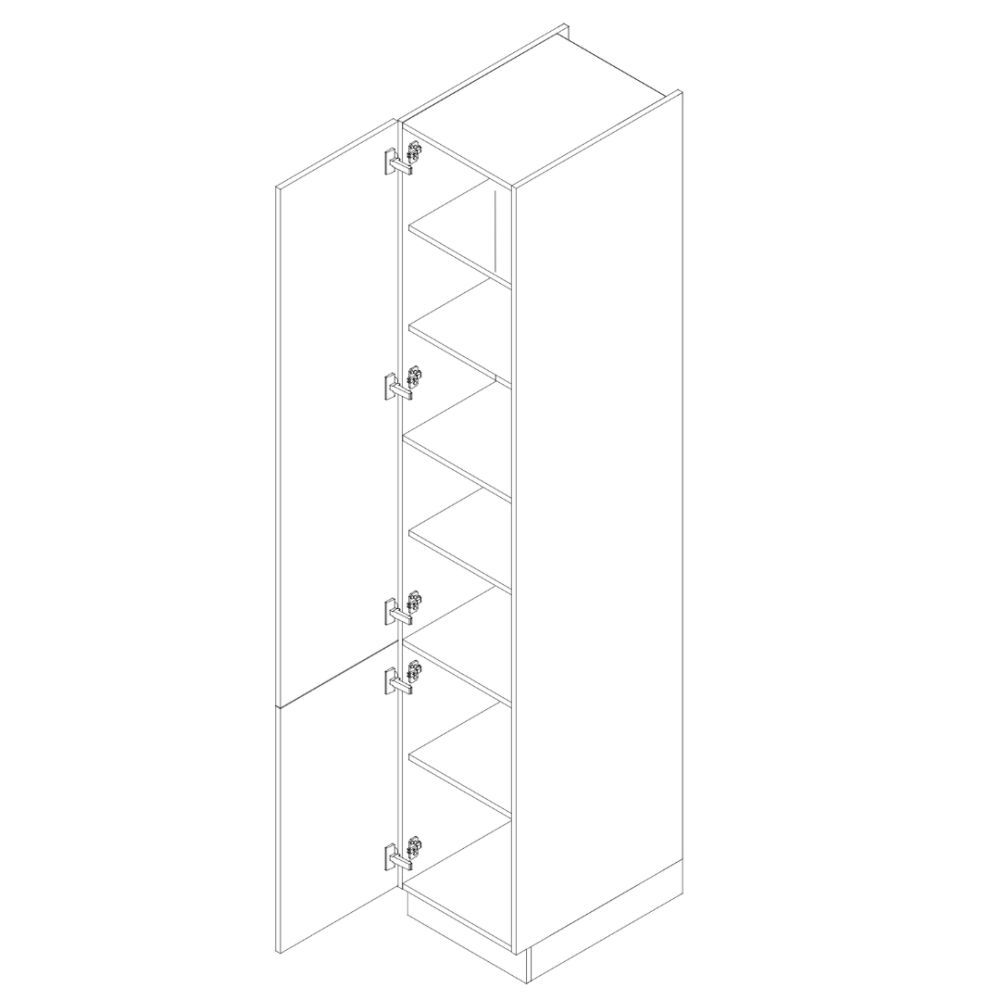 Front wykonany z płyty laminowanej 18 mm, natomiast korpus z płyty laminowanej o grubości 16 mm. Cokół oraz podstawowe akcesoria montażowe w komplecie, cichy domyk w standardzie, natomiast uchwyt oraz blat do wyboru w opcjach dodatkowych.