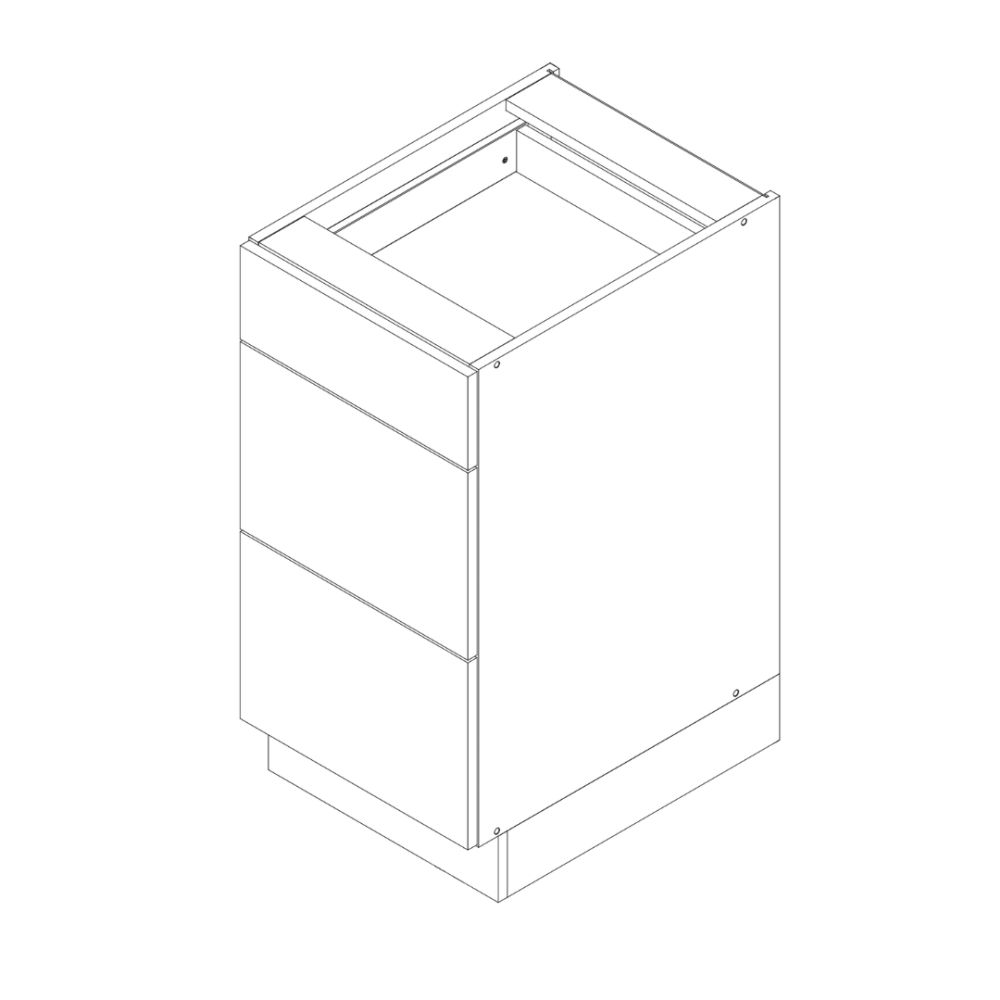 Szafka dolna D90PC S/3 Emily, z trzema szufladami z systemu TREND line. Front wykonany z płyty MDF foliowanej o grubości 16 mm, natomiast korpus z płyty laminowanej o grubości 16 mm. Cokół oraz podstawowe akcesoria montażowe w komplecie, cichy domyk w standardzie, natomiast uchwyt oraz blat do wyboru w opcjach dodatkowych.