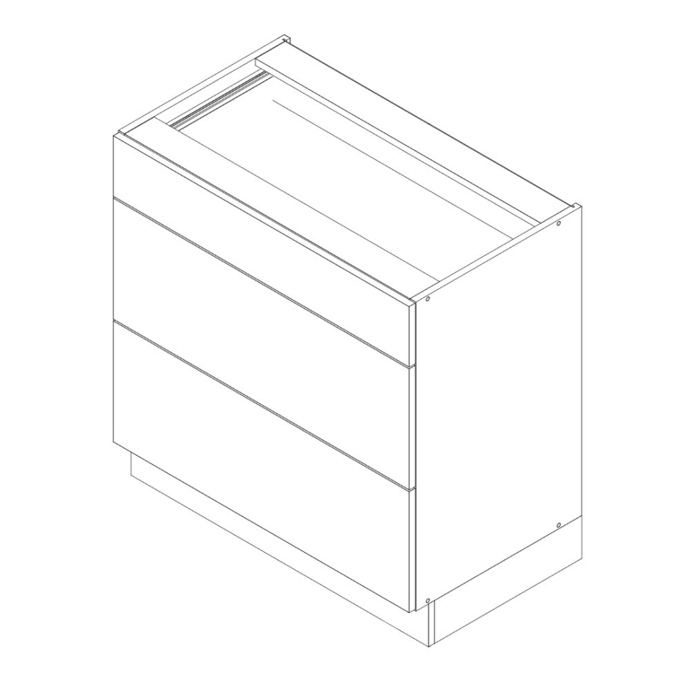 Szafka dolna D90PC S/3 Emily, z trzema szufladami z systemu TREND line. Front wykonany z płyty MDF foliowanej o grubości 16 mm, natomiast korpus z płyty laminowanej o grubości 16 mm. Cokół oraz podstawowe akcesoria montażowe w komplecie, cichy domyk w standardzie, natomiast uchwyt oraz blat do wyboru w opcjach dodatkowych.