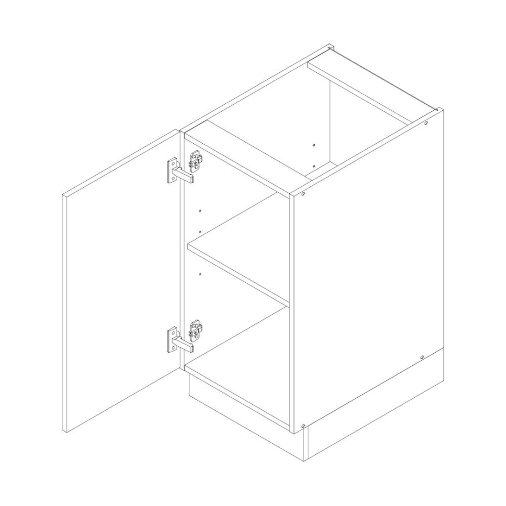 Front wykonany z płyty MDF lakierowanej w kolorze biały połysk lub kaszmir mat o grubości 19 mm, natomiast korpus z płyty laminowanej o grubości 16 mm. Cokół oraz podstawowe akcesoria montażowe w komplecie, cichy domyk w standardzie oraz blat do wyboru w opcjach dodatkowych.