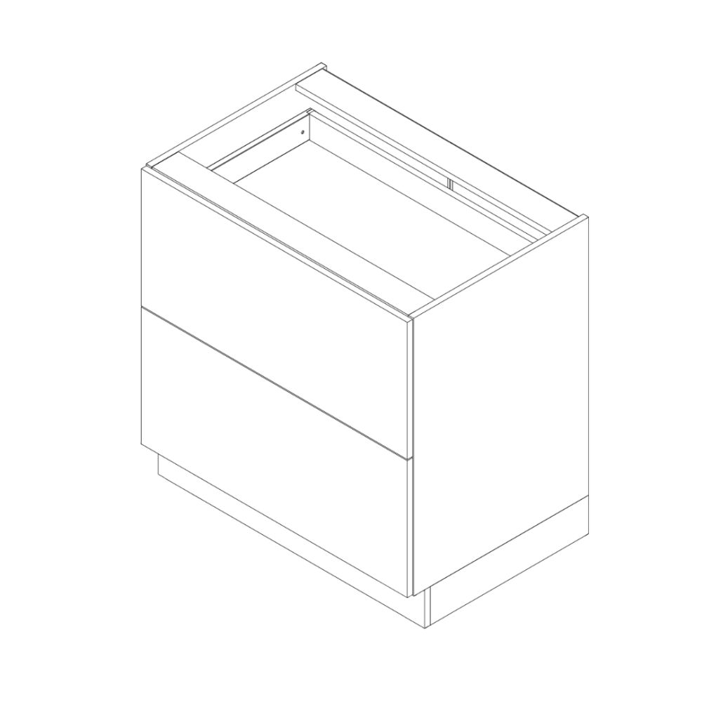 Front wykonany z płyty MDF lakierowanej w kolorze biały połysk lub kaszmir mat o grubości 19 mm, natomiast korpus z płyty laminowanej o grubości 16 mm. Cokół oraz podstawowe akcesoria montażowe w komplecie, cichy domyk w standardzie oraz blat do wyboru w opcjach dodatkowych.