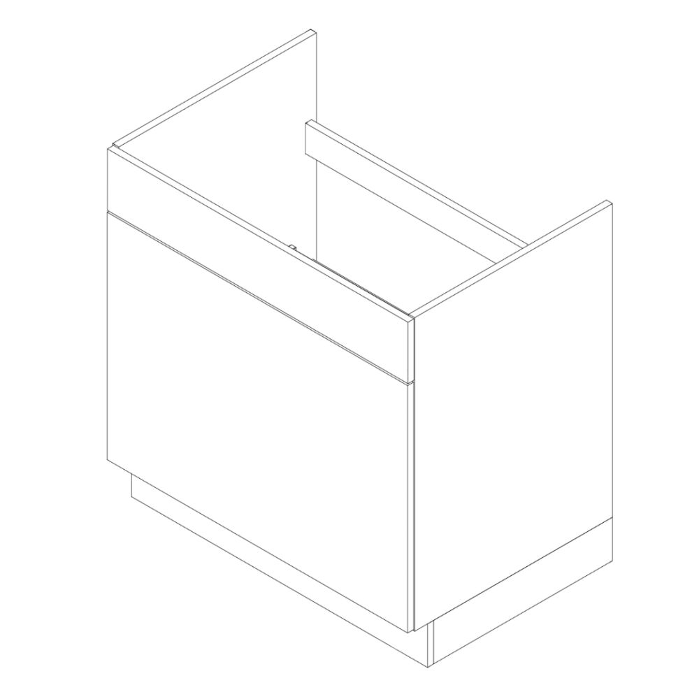 Front wykonany z płyty MDF lakierowanej w kolorze biały połysk lub kaszmir mat o grubości 19 mm, natomiast korpus z płyty laminowanej o grubości 16 mm. Cokół oraz podstawowe akcesoria montażowe w komplecieoraz blat do wyboru w opcjach dodatkowych.