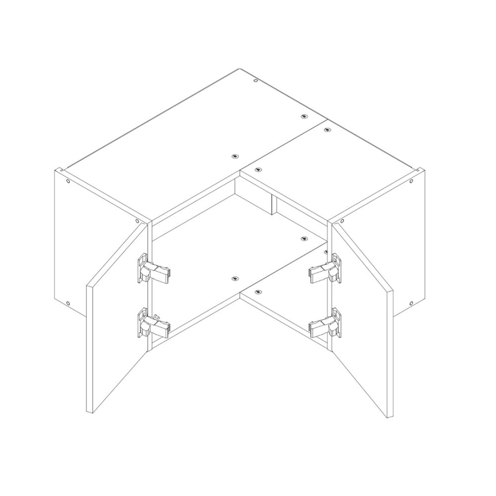 Front wykonany z płyty MDF lakierowanej w kolorze biały połysk lub kaszmir mat o grubości 19 mm, natomiast korpus z płyty laminowanej o grubości 16 mm. Cokół oraz podstawowe akcesoria montażowe w komplecie. Blat do wyboru w opcjach dodatkowych.