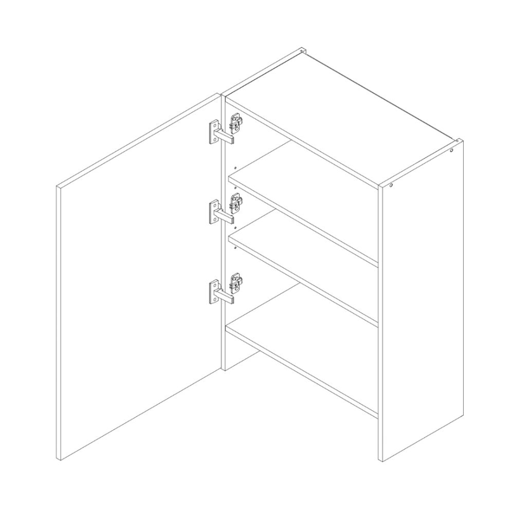 Szafka górna WRN P/L Gaja z jednym frontem, szafka narożna z systemu TREND line. Front wykonany z płyty MDF lakierowanej w kolorze biały połysk lub kaszmir mat o grubości 19 mm, natomiast korpus z płyty laminowanej o grubości 16 mm. Podstawowe akcesoria montażowe w komplecie. Dodatkową zaletą systemu TREND line jest cichy domyk.