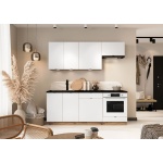 Cokół w zestawie z szafką, podstawowe akcesoria montażowe w komplecie. Szafki dolne bez blatu. Blat dedykowany kolekcji to blat czarna skała,petra beż, dąb artisan albo biały. Ponadto istnieje możliwość zakupu innych blatów z dostępnej oferty.