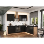 Cokół w zestawie z szafką, podstawowe akcesoria montażowe w komplecie. Szafki dolne bez blatu. Blat dedykowany kolekcji to blat czarna skała,petra beż, dąb artisan albo biały. Do tego zestawu przychodzą dwie sztuki blatu w odcinku 2,0 mb. Ponadto istnieje możliwość zakupu innych blatów z dostępnej oferty.