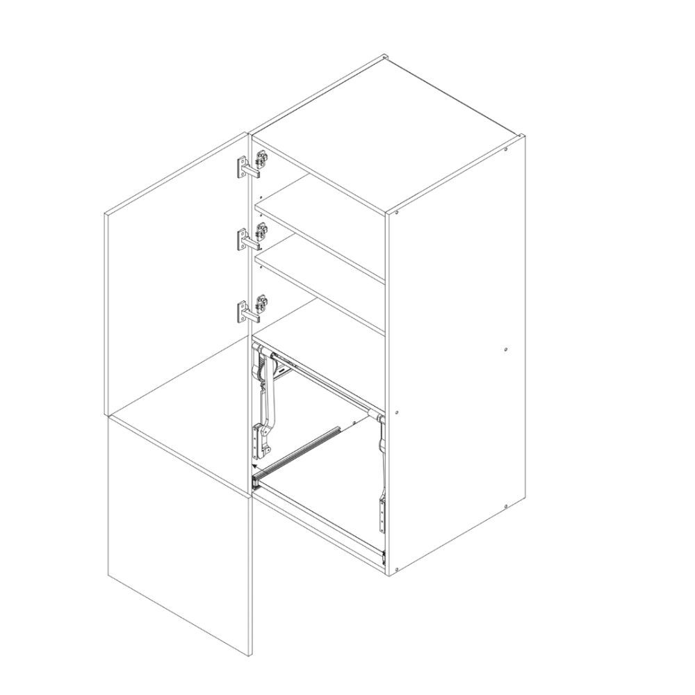 Szafka stawiana na blacie W58W HL PW /1283 Oscar z dwoma frontami z systemu TREND line. Szafka z wysuwaną półką i jednym frontem unoszonym do góry.