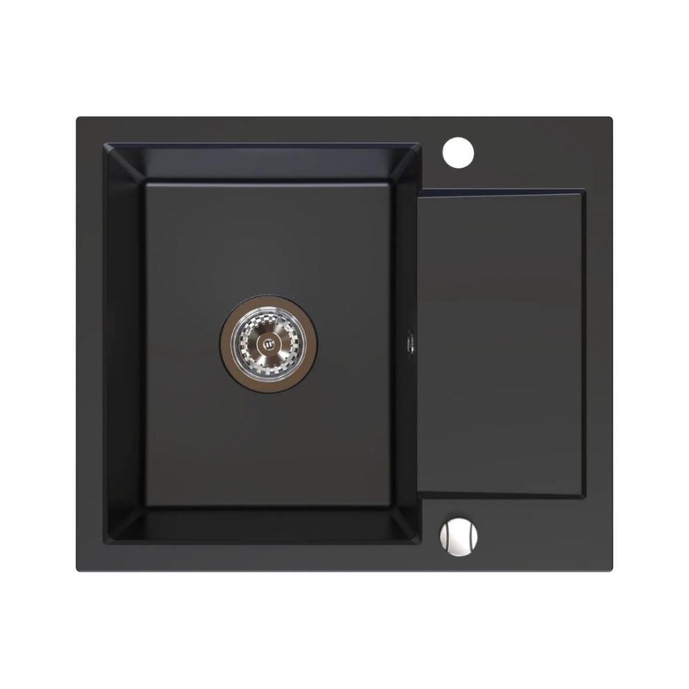 Granitowy zlew 59cmx44cm+bateria. Kolor: czarny, bateria: czarna