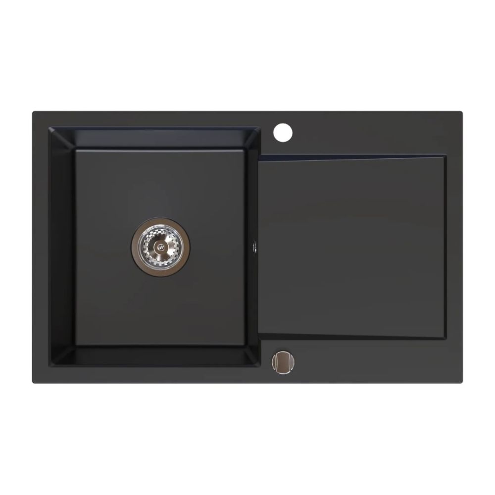 Granitowy zlew 76cmx44cm+bateria. Kolor: czarny, bateria: czarna