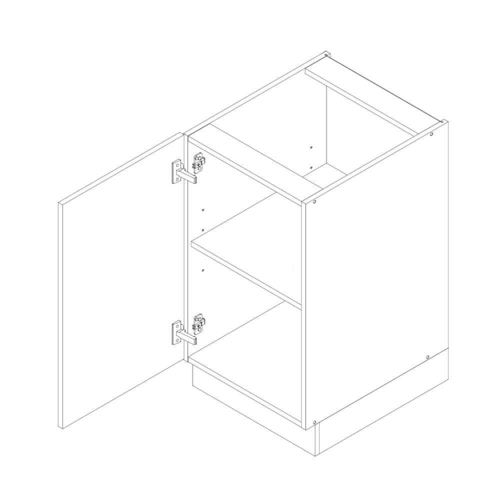 Front wykonany z płyty MDF foliowanej o grubości 19 mm, natomiast korpus z płyty laminowanej o grubości 16 mm. Cokół oraz podstawowe akcesoria montażowe w komplecie, cichy domyk w standardzie, blat do wyboru w opcjach dodatkowych.