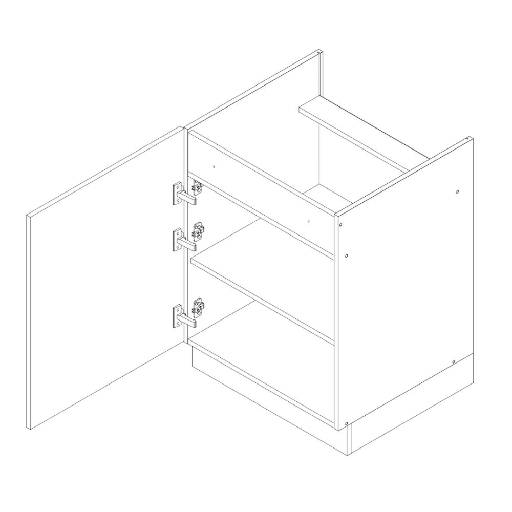Front wykonany z płyty MDF foliowanej o grubości 19 mm, natomiast korpus z płyty laminowanej o grubości 16 mm. Cokół oraz podstawowe akcesoria montażowe w komplecie, cichy domyk w standardzie, blat do wyboru w opcjach dodatkowych.