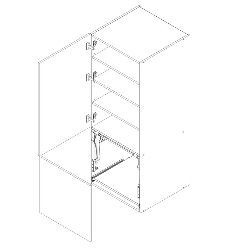 Szafka stawiana na blacie W58W HL PW /1473 Zoya z dwoma frontami z systemu TREND line. Szafka z wysuwaną półką i jednym frontem unoszonym do góry.